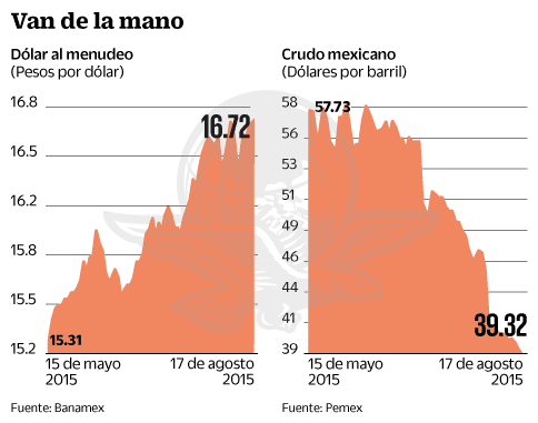 César Elías, analista de Multiva, coincidió en que el incremento del dólar fue propiciado por las menores cotizaciones del petróleo y proyectó para hoy cotizaciones al mayoreo de entre 16.40 y 16.50 pesos. Esto al menudeo significará niveles de 16.70 a 16.80 unidades.