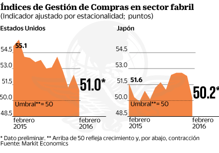 De acuerdo con su Índice de Gestión de Compras (PMI), la producción pasó de 52.4 puntos en enero, a 51.0 en febrero, su menor crecimiento desde septiembre de 2009.