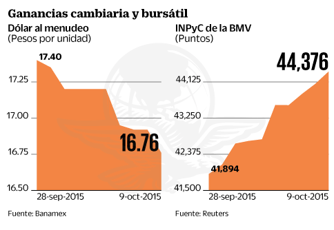 La semana pasada fue la mejor del año para el peso mexicano, luego de apreciarse 44 centavos frente al dólar, para acabar en 16.76 unidades al menudeo, su mejor nivel desde el 18 de agosto, según Banamex.