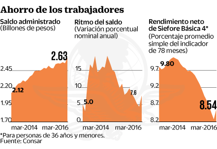 En el rendimiento obtenido por las Siefore, esto es, las sociedades de inversión encargadas de administrar los recursos de los trabajadores, la Siefore Básica 4, para empleados menores de 36 años, alcanzó un retorno de 8.54% en marzo; en tanto, Siefore Básica 3, para trabajadores de 37 a 45 años, llegó a un rendimiento de 7.83%.