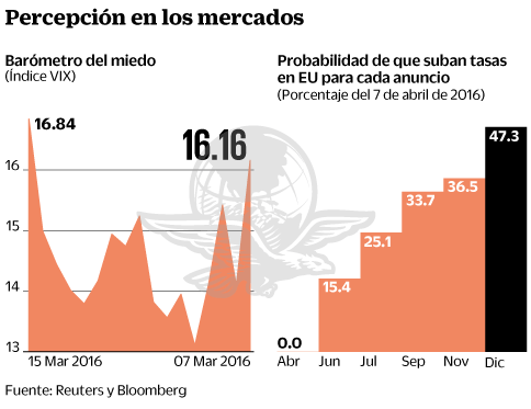 El índice de volatilidad VIX, también conocido como “el barómetro del miedo”, repuntó 14.7% y significó su mayor incremento desde el pasado 7 de enero, cuando entonces se disparó 21.4% ante el desplome bursátil que se suscitó ese día en China.