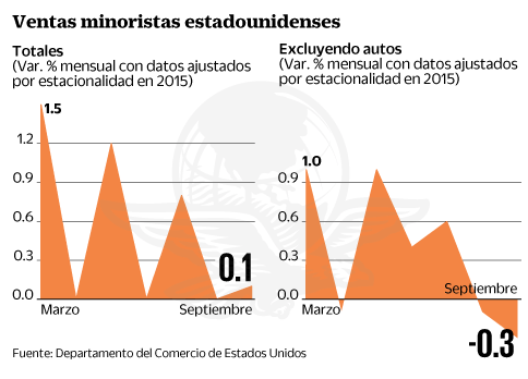 Ayer informaron que el comercio minorista en EU creció 0.1% en septiembre respecto a agosto, por debajo del 0.2% que esperaba el mercado.
