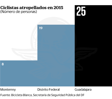 Entre 2009 y 2015 el colectivo tapatío Bicicleta Blanca ha documentado la muerte de 183 ciclistas atropellados en la Zona Metropolitana de Guadalajara, entre ellas —ocurrida en marzo pasado— la de Gustavo Berlanga Sánchez, Don Gus, un activo promotor de la bicicleta como medio de transporte.