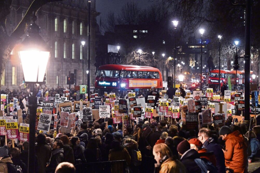 Miles de personas se movilizaron ayer en Londres y en otras ciudades británicas para pedir que se cancele la visita de Estado a Reino Unido del presidente de la Unión Americana, Donald Trump.
