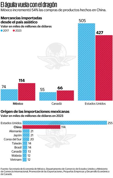 “México y Canadá no pueden reducir su dependencia de China debido a que las importaciones chinas desmantelaron las industrias y ahora no será tan fácil volver a fabricar en los propios países, porque ya los productos se modernizaron, aparecieron nuevas tecnologías y hay carencia de maquinaria y tecnología para rehabilitar las plantas que existían antes”, dijo.