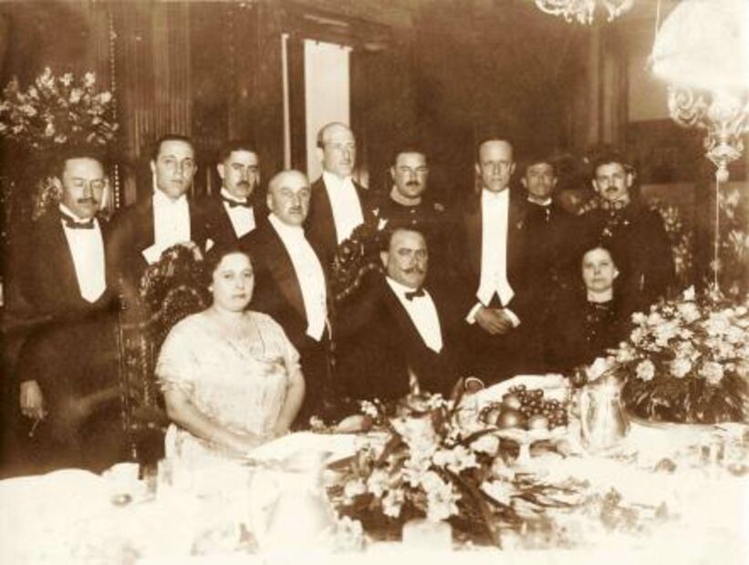 El presidente y su secretario de Educación Pública, José Vasconcelos, en una cena en el Jockey Club. Vasconcelos fue otro gran impulsor del deporte en México.