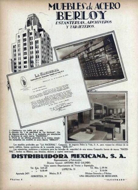 Pero no sólo aportó el concreto para todo el edificio, Tolteca también se publicitó con fotografías del edificio de La Nacional durante su construcción y posteriormente, varias de estas imágenes fueron publicadas en EL UNIVERSAL ILUSTRADO y tomadas por el fotógrafo Adam Ruvalcaba.