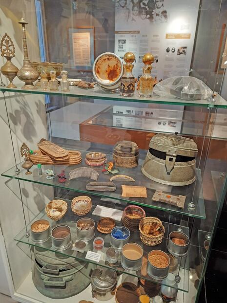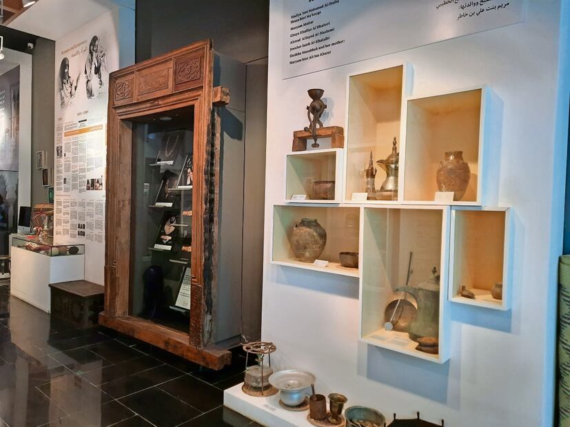 Además de la presencia de la mujer en el ámbito político, económico y educativo, se muestra la faceta dentro del hogar y personal, a través de la exhibición de objetos como indumentaria, productos de belleza —donde destaca el uso de especias, como la madera aromática oud y el delineador de ojos kohl— y utensilios como la icónica cafetera árabe o los jarrones que se usaban para conservar carne en el desierto hasta por un año.