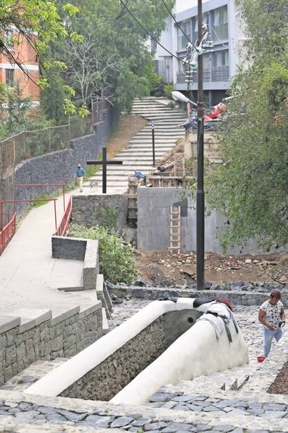 Las escaleras que conducen hacia la ermita son una alternativa que los pobladores de Santa Fe toman para, a través de un edificio privado y luego de enseñar su credencial de elector, cortar camino y pasar al otro lado, hacia la avenida Constituyentes.
