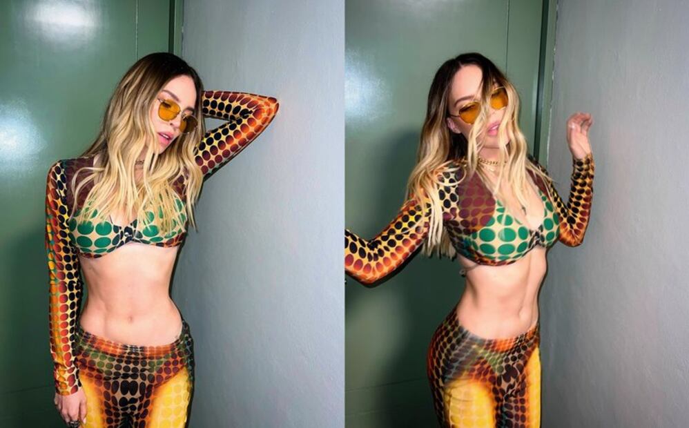 Para completar el look, Belinda añadió unas gafas de sol con lentes de color amarillo, siguiendo la paleta vibrante de su atuendo. Este accesorio le dio un aire retro y divertido, muy en línea con el estilo de los años 90, cuando el estampado de lunares tuvo su auge.