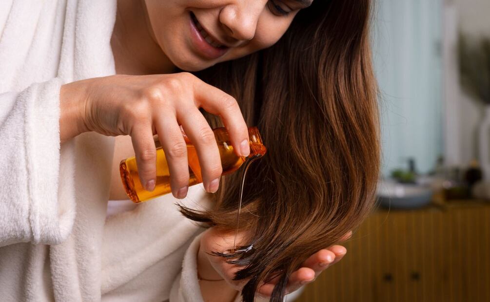 - Puedes aplicar el aceite como acondicionador, esparciendo de 10 a 15 gotas desde el cuero cabelludo hasta las puntas. Dejándolo reposar en tu cabello por 30 minutos antes de enjuagar y lavar como de costumbre.