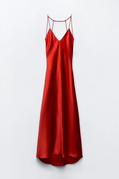 En esta temporada, el rojo está en máxima tendencia. Si buscas un slip dress con un giro, puedes considerarlo en este intenso color.