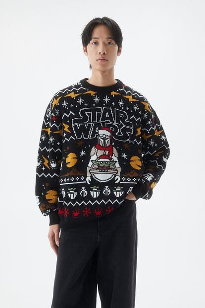 - El universo de Star Wars se viste de Navidad en este auténtico ugly sweater de Pull & Bear (disponible en negro y verde). Precio: $899 pesos.