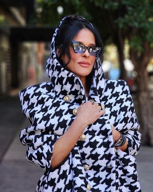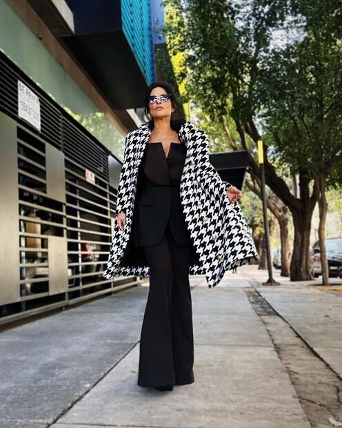 En una de sus últimas fotografías, luce un sofisticado abrigo con un estampado que no pasa de moda: el pata de gallo, popularizado en diferentes etapas de la moda por firmas como Chanel y Dior, y personalidades como la princesa Diana de Gales. Es un diseño clásico y chic, en el que se combinan los colores blanco y negro de una manera vanguardista (al día de hoy).