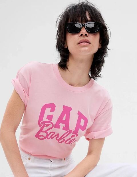 La marca Gap unió su icónico logo con el de Barbie en color hot pink en un ajustado modelo de algodón de una tonalidad rosada muy femenina para conseguir un look desenfadado o deportivo.