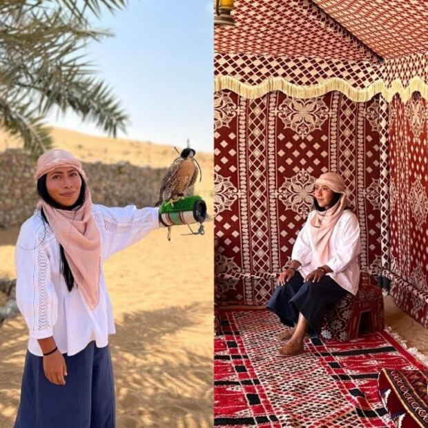 En días anteriores, a través de Elle México, pudimos ver a Yalitza Aparicio disfrutando de un brunch en el desierto, portando vestimenta típica de la región, donde optó por combinar prendas de color azul y blanco.
