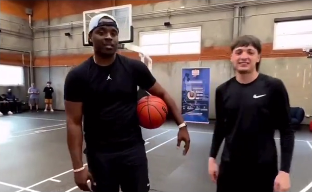 Peso Pluma, lució acompañado por Chris Matthews, uno de los más famosos entrenadores de tiro en la NBA, imágenes en las que agradeció el apoyo de sus fanáticos.