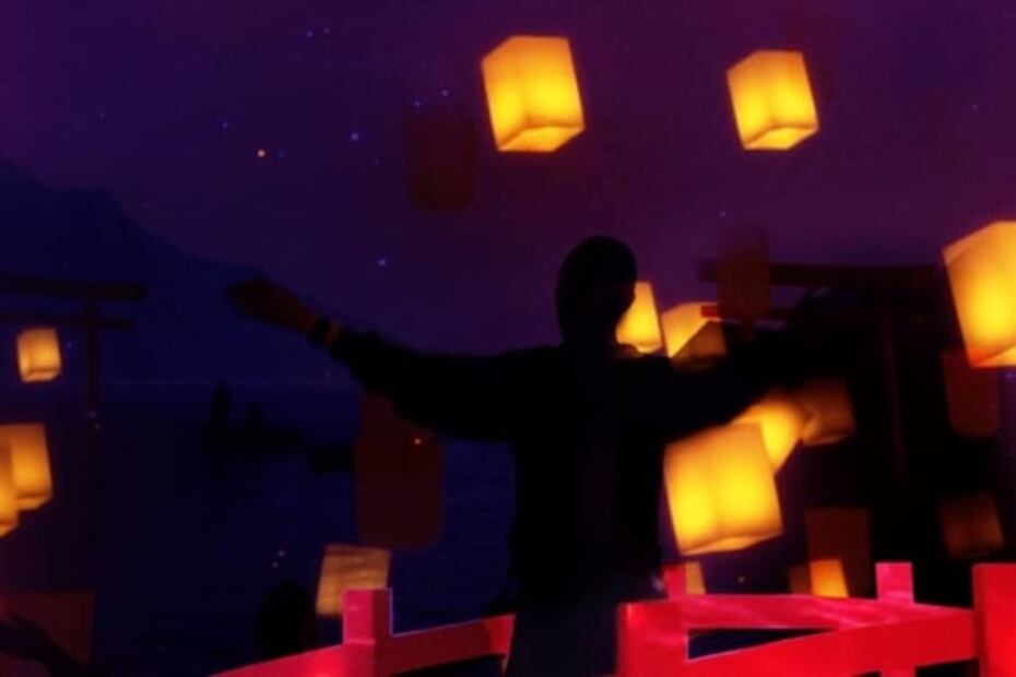 - Obon : sala inmersiva con elementos tradicionales de Japón, como un puente , un torii (puerta de templos nipones), un video mapping omikoshi sobre un templo a escala y más efectos de sonido y proyecciones.
