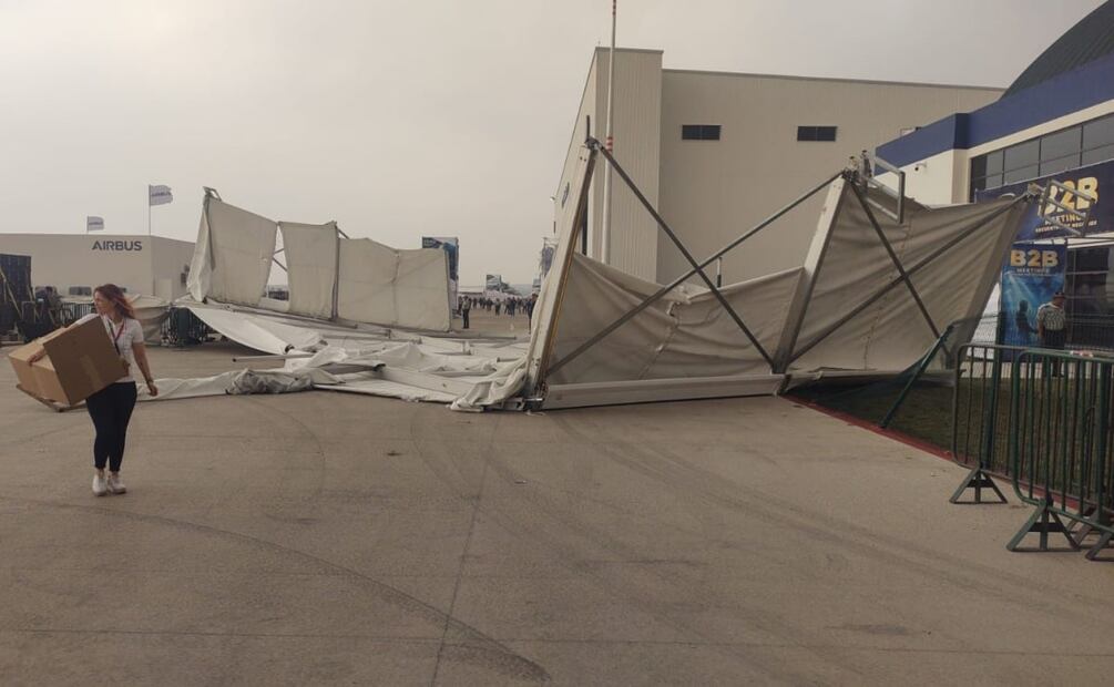 Según el reporte, el siniestro ocurrió en la zona de hangares al desplomarse una estructura tubular metálica, con una lona de aproximadamente 30 metros de largo por 15 metros de ancho.