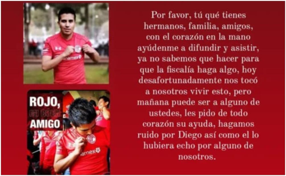 Diego era aficionado del equipo Diablos Rojos de Toluca, por lo que también sus compañeros de la porra difunden la imagen del joven con un mensaje: “La porra no está completa, nos falta Diego. Vamos a demostrar que somos más y hagamos ruido acabando el partido afuera de la Fiscalía”.