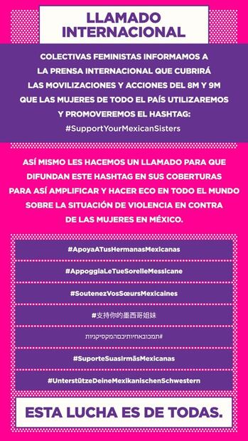 Women in Mexico are asking feminists abroad to share their support for women in Mexico by using the following hashtags :