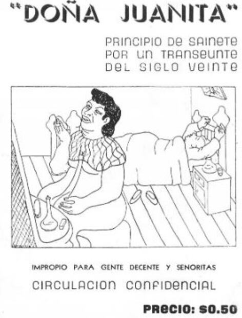 “Doña Juanita ( marijuana ), dark-skinned and robust but of a certain age, fixed in front of the mirror her decayed beauty. By the door come Heroin , an artificial blonde with curled eyelashes; her friend Morphine , a bit older but not less attractive, both of them covered in jewels. Cocaine , her skin unbelievably pale and with dark circles that seem a hell’s halo; Opium , a mature man, serious and elegant with worldly poise movements, and at last, Alcohol , clumsy, rude, and rubicund,” says the story.