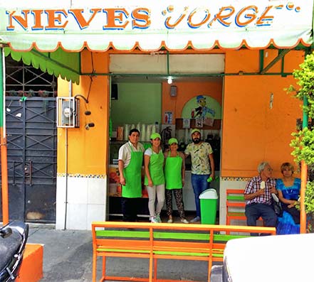 A partir de mucho esfuerzo y sacrificio, Jorge abrió su nevería. "Al principio pensé ponerle el nombre de mi abuelo, pero una vez él me dijo: ‘cada quien tiene su sazón, su mano’. Entonces mejor le puse Nieves Jorge, porque respeto tanto sus nieves que no le podía poner su nombre a algo que no es lo mismo", dijo. Sin embargo, la fotografía de su abuelo ocupa un lugar principal en una de las paredes del establecimiento.