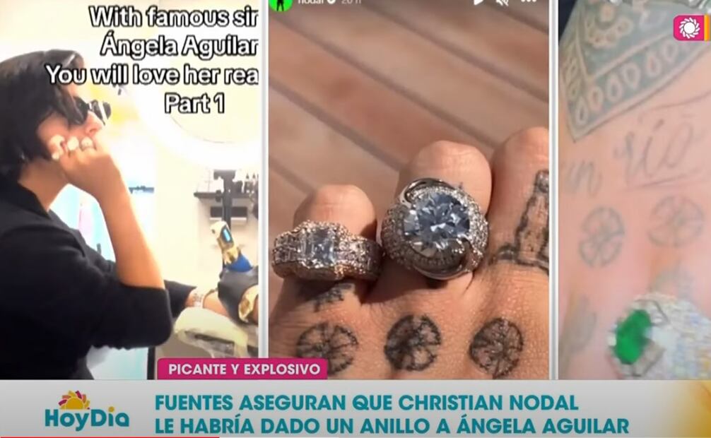 El programa "Hoy Día" mostró la mano de la cantante que lucía prominentes anillos, los cuales son muy parecidos a los que suele usar Nodal; por cierto que ambos se acaban de tatuar en el mismo estudio, así lo muestran los videos.