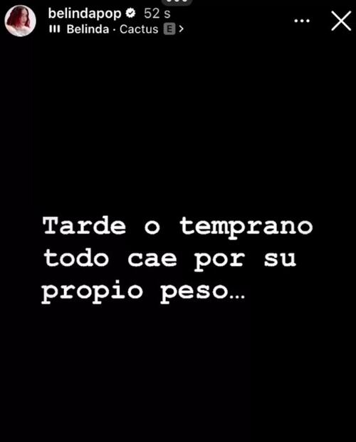 Entre las reacciones que provocaron sus palabras estuvo la de Belinda, quien tras dos años del truene con Nodal revivió la relación con el lanzamiento del tema "Cactus", mismo que usó para musicalizar una publicación que segundos después borró.