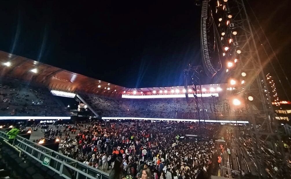 La oscuridad que permeaba en el estadio cedió a causa de la intensa iluminación que dotó amplitud a las gradas y permitió que el público se tomara fotografías y se desplazara entre las filas sin la necesidad de encender sus celulares.