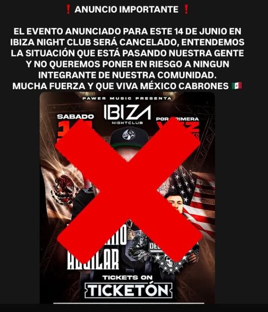A través de su cuenta de Instagram, el rapero anunció que el show, programado para el sábado 14 de junio en el Ibiza Night Club, quedaba suspendido debido al incremento de redadas en la zona.