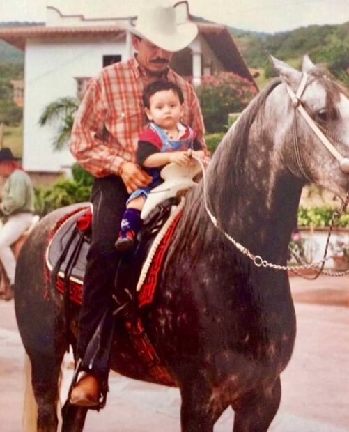 Maribel Guardia compartió una conmovedora publicación con sus más de nueve millones de seguidores en Instagram, conde colgó una foto en la que aparece Joan Sebastian y su hijo Julián cuando era pequeño, ambos están cabalgando.