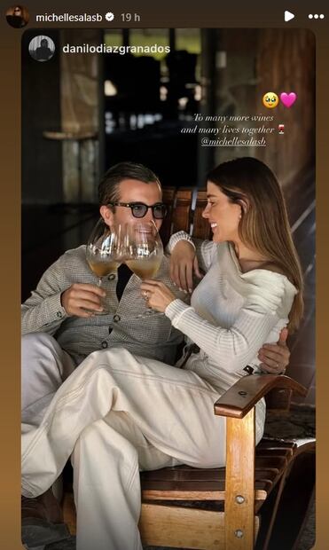 En una fotografía donde ambos se miran sonrientes mientras brindan con una copa, él le escribió: “Por muchos más vinos y una vida juntos.”