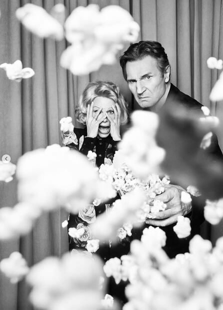 Acompañó su breve mensaje con una serie de divertidas fotos con Liam Neeson, las cuales están recibiendo múltiples comentarios en Instagram, mensajes que felicitan a la pareja.