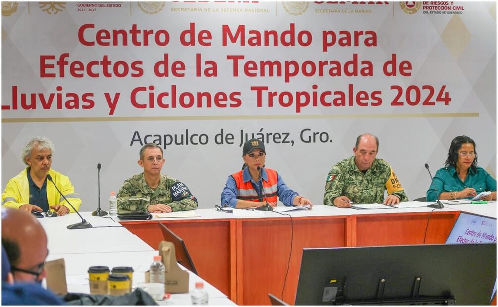 Desde el Centro de Mando para Efectos de la Temporada de Lluvias y Ciclones 2024 y en compañía de mandos de la Marina, la Secretaría de la Defensa Nacional (SEDENA) y la presidenta municipal de Acapulco, Abelina López Rodríguez, la gobernadora Salgado Pineda aseguró que se mantiene la alerta, ante el pronóstico de que continuarán las lluvias.