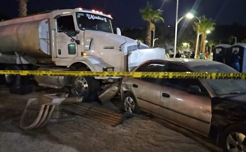 LA PAZ, BCS., 18 de abril.- Un pipa chocó contra varios automóviles en una zona del malecón de La Paz, Baja California Sur, en un parque y puesto de cocos y aguas frescas y dejó al menos tres personas gravemente heridas.