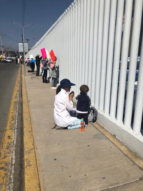 En tanto, una cadena de mujeres, hombres y niños realizaron un rosario en todo el perímetro de la sede del congreso local.