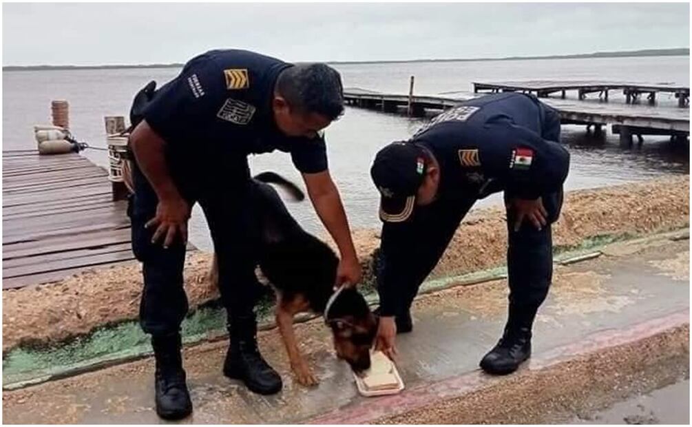 Río Lagartos, Yucatán.- Una gran indignación ha causado un acto de crueldad animal en pleno paso del huracán Milton, pues este martes agentes de la Secretaría de Seguridad Pública rescataron a un perrito que alguien dejó amarrado en el muelle de Río Lagartos, y que con la creciente, quedó prácticamente dentro del mar.