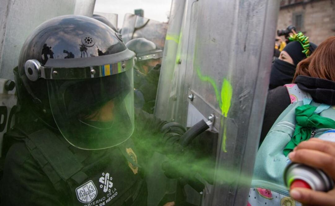 Un grupo de mujeres encapuchadas que protestaban afuera de Palacio Nacional se enfrentaron con policías capitalinas que intentaron retirarlas del lugar