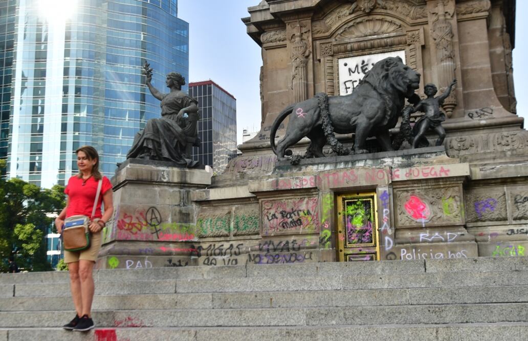 Así quedó el Ángel y edificios tras protesta de mujeres