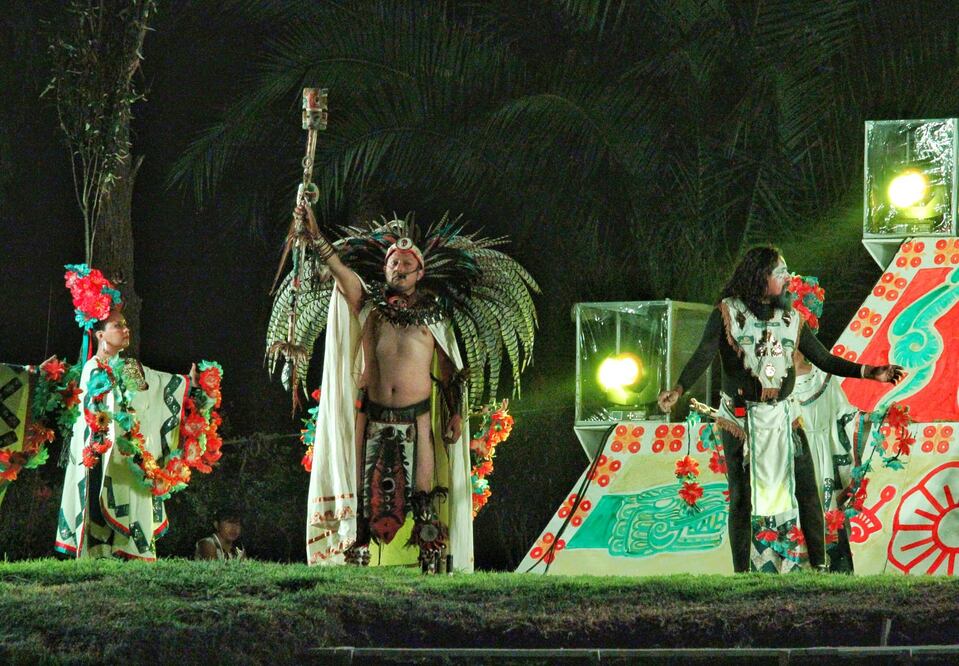 La puesta en escena está a cargo del grupo de danza Ollin Acalli, con más de 35 actores, entre danzas y espectaculares fuegos artificiales.