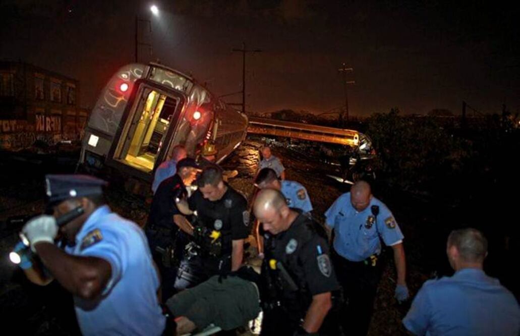 Un tren de la línea Amtrak de la ruta Washington-Nueva York se descarriló esta noche cerca de la ciudad de Filadelfia, con saldo parcial de cinco muertos y 50 heridos