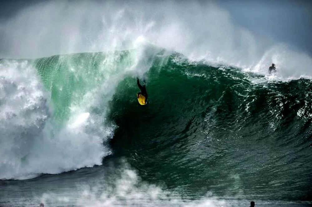 Residentes surfean sobre las olas del Océano Pacífico, que han alcanzado un gran tamaño debido al fenómeno denominado mar de fondo, en California, Estados Unidos.