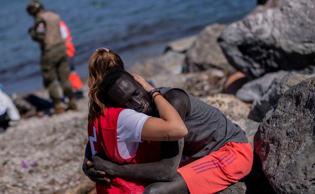 El abrazo de una voluntaria de la Cruz Roja a un migrante en Ceuta: las fotos de la crisis migratoria en España