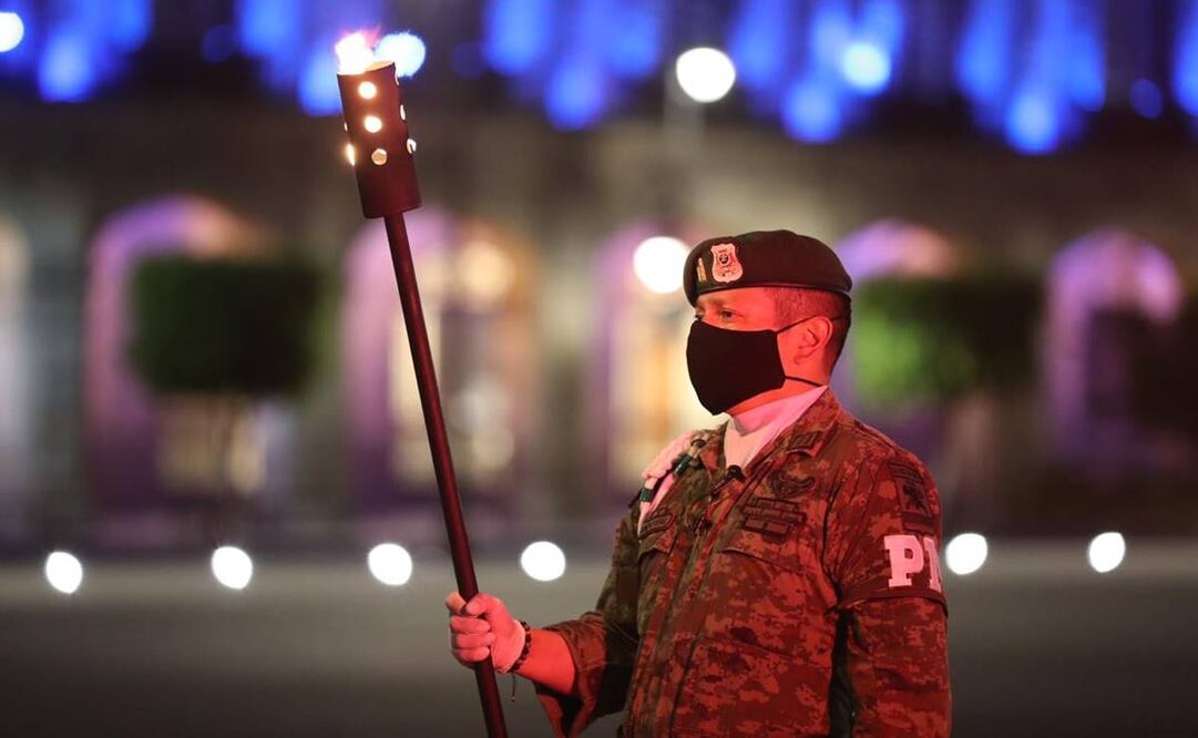 Este miércoles se llevo a cabo un ensayo de cómo se acomodaría y prenderían las antorchas para la celebración del Grito de Independencia como lo propuso el presidente López Obrador. La actividad estuvo supervisada por elementos de la Sedena. (Fotos: Berenice Fregoso/EL UNIVERSAL)
