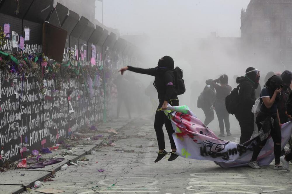 Al grito de “no va a caer, lo vamos a tirar”, las mujeres armadas con martillos, aerosoles, lazos, entre otros, quitaron ya cuatro vallas de dos metros que protegen Palacio Nacional, a la altura de la puerta mariana.
