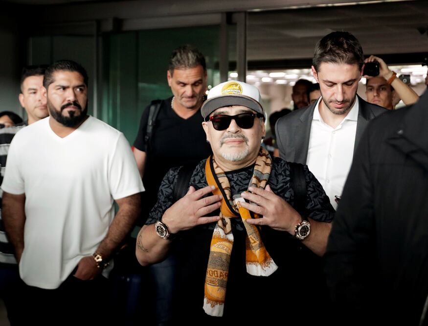 Entre empujones, cánticos y peticiones de los aficionados de Dorados, llegó Maradona a Sinaloa