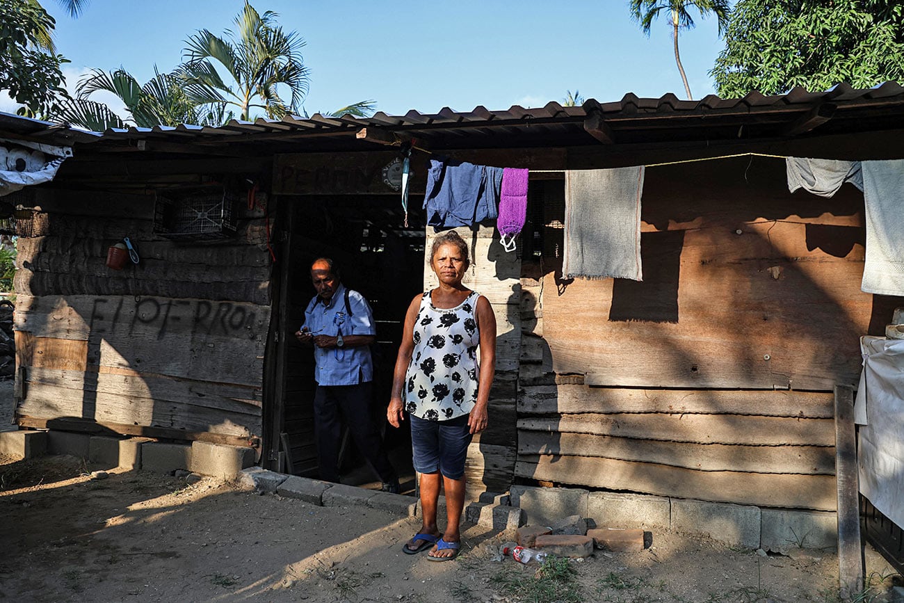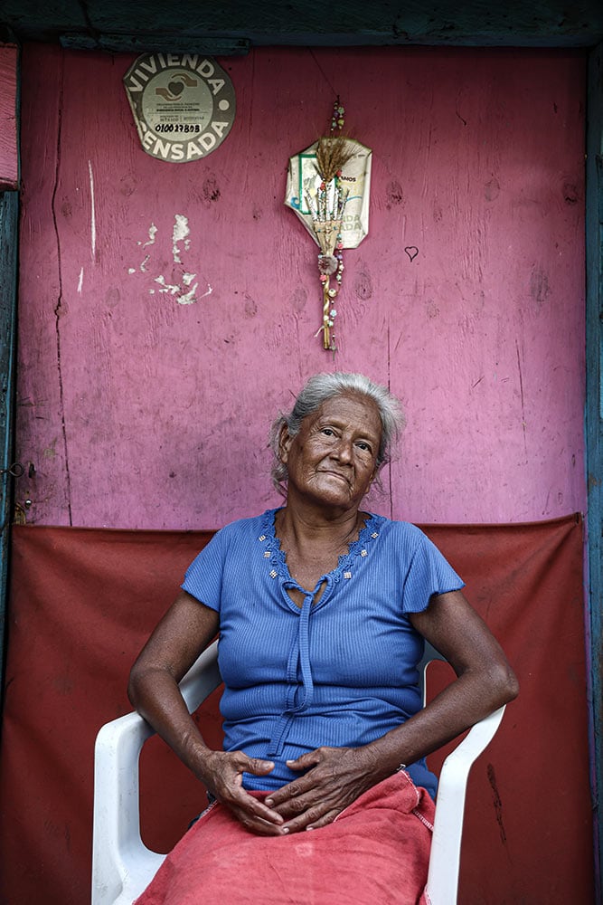 Manuela Pantoja, de 61 años, es amiga de Guadalupe y vive en un terreno con varias casitas de madera y lámina. Su hija es el sustento de la familia de cuatro personas y trabaja actualmente en la reconstrucción de la zona Diamante. Dice que perdieron todo. Evangelina Crisante también vive aquí y, desde Otis, sus pies se lastimaron y se duermen cuando se sienta. Tiene que estar parada o caminando la mayoría del tiempo. “Me cargó el aire volando, caí sobre una palmera, se me prensaron mis pies”.