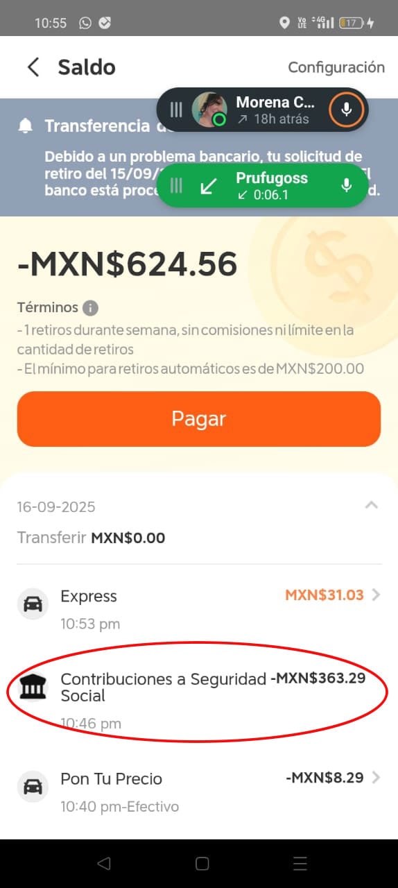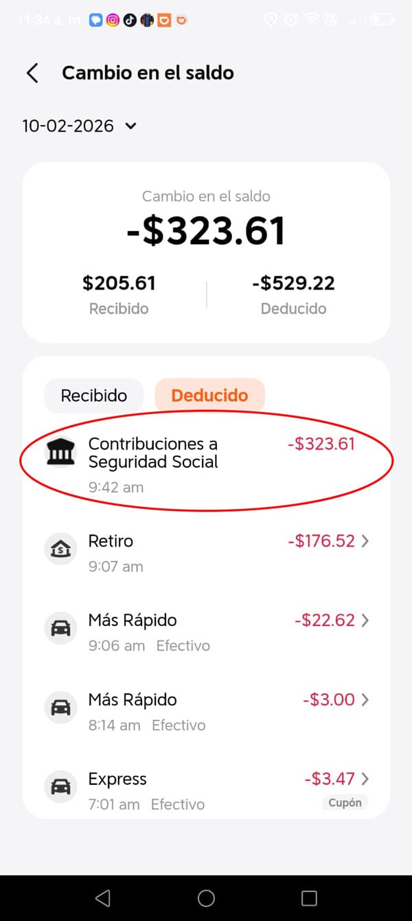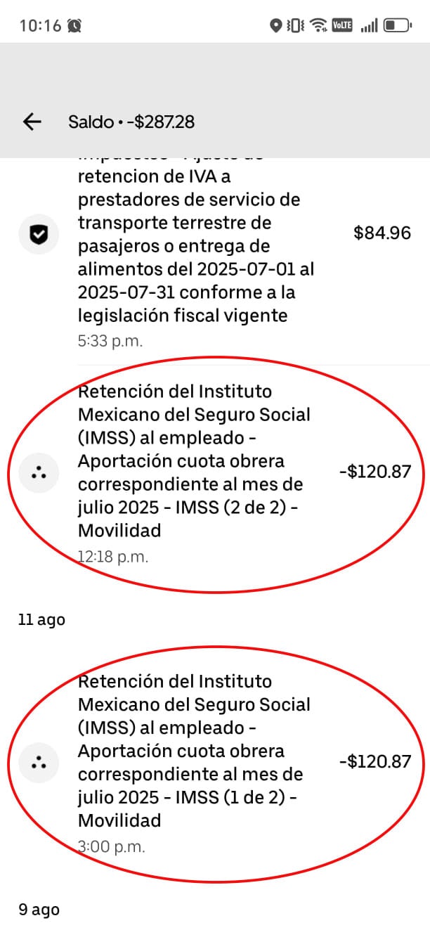 Entonces se cambió a DiDi y, desde octubre de 2025, supera los 35 mil pesos de ingreso mensual, muy por encima del umbral establecido por las autoridades para acceder a la seguridad social. No lo han dado de alta.