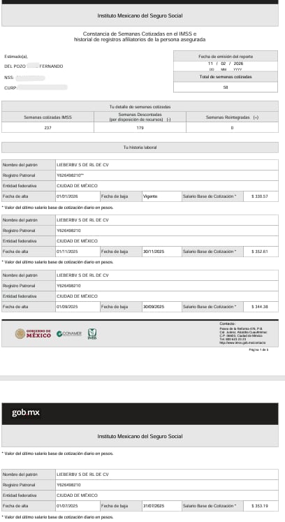 Manuel Carrillo conduce de 12 a 14 horas diarias para aplicaciones digitales. “Siempre rebaso lo que me piden, pero nunca me han registrado en el IMSS”. En agosto de 2025, después de trabajar ocho años para Uber, la plataforma le retuvo la cuota obrero patronal de julio sin darle de alta en el seguro, según se documenta en su constancia de semanas cotizadas.